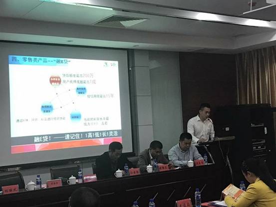 為推動(dòng)龍巖分行業(yè)務(wù)發(fā)展,3月24日下午,龍巖分行與龍巖物流協(xié)會(huì)聯(lián)動(dòng),參加龍巖市物流行業(yè)協(xié)會(huì)第三次年會(huì)。我分行在年會(huì)現(xiàn)場(chǎng)懸掛橫幅,擺放融E貸、銀稅寶、展業(yè)寶等產(chǎn)品展架,同時(shí)向每一位協(xié)會(huì)成員發(fā)放產(chǎn)品宣傳單,并向現(xiàn)場(chǎng)咨詢產(chǎn)品的客戶進(jìn)行了詳細(xì)的解說。在年會(huì)過程中,我分行客戶經(jīng)理通過現(xiàn)場(chǎng)講解,配合PPT,向參會(huì)的各物流企業(yè)詳細(xì)的介紹了我行鳳凰花卡、快E貸、融E貸、展業(yè)寶、銀稅寶等產(chǎn)品優(yōu)勢(shì)。