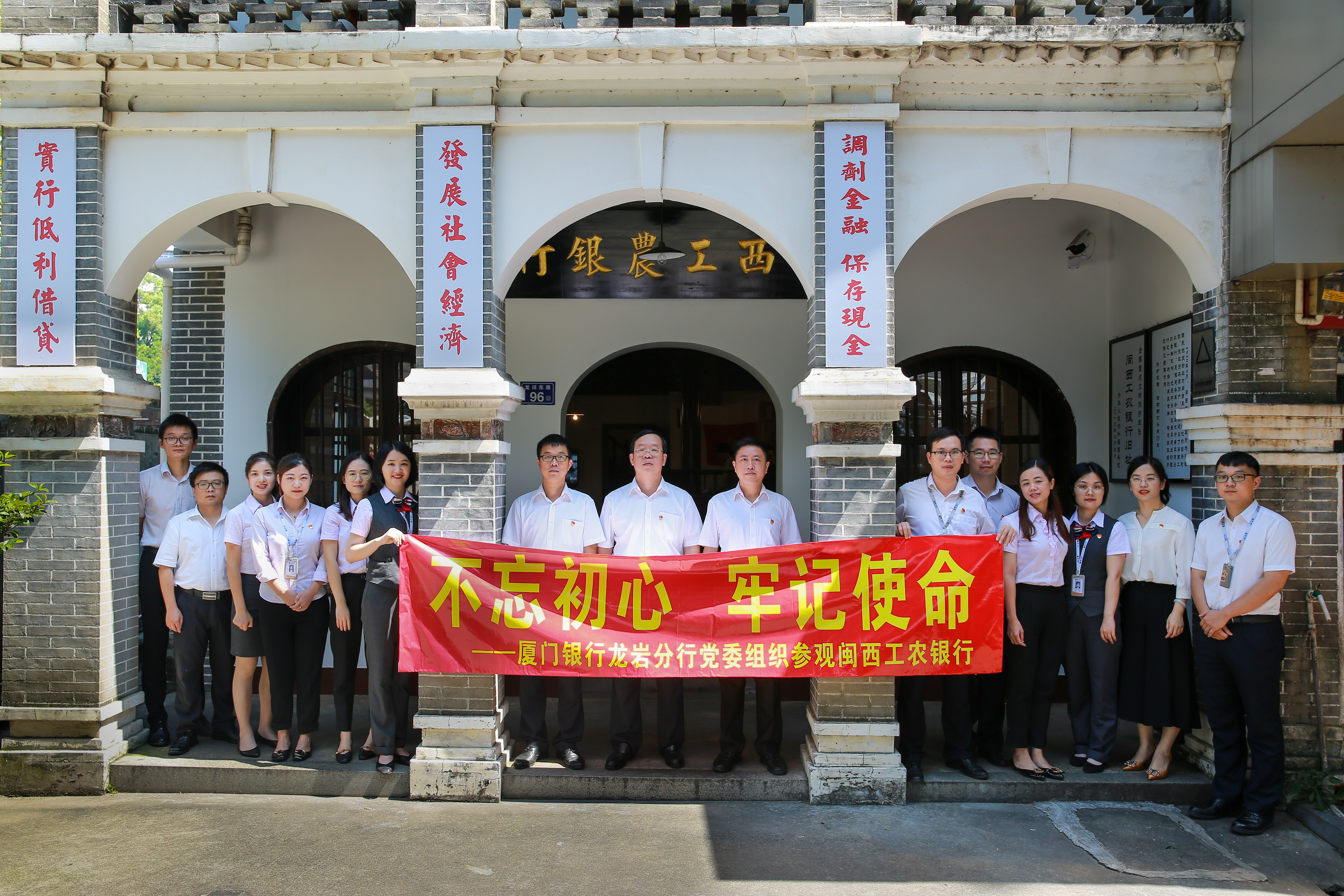 2019年8月,為紀(jì)念建黨98周年華誕,促進(jìn)廣大黨員干部堅(jiān)定理想信念、增強(qiáng)基層黨組織的凝聚力、戰(zhàn)斗力,龍巖分行黨委組織全體黨員前往閩西工農(nóng)銀行舊址開(kāi)展“不忘初心,牢記使命”主題教育活動(dòng)。