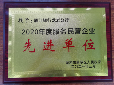 龍巖分行榮獲“2020年度新羅區(qū)服務(wù)民營(yíng)企業(yè)先進(jìn)單位”榮譽(yù)稱號(hào)