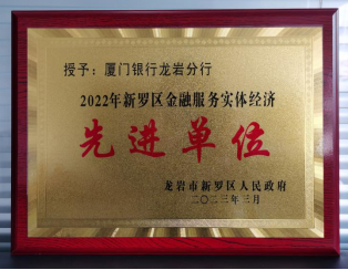 2023年3月9日,根據(jù)龍巖市新羅區(qū)人民政府通報(bào),廈門銀行龍巖分行榮獲“2022年新羅區(qū)金融服務(wù)實(shí)體經(jīng)濟(jì)先進(jìn)單位”榮譽(yù)稱號(hào)。
