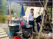 午間時光,男職工們化身大廚,精心烹制著各式美食;而女職工們則享受著這份難得的悠閑時光,品嘗著男同胞們親手烹飪的柴火飯菜和美味燒烤,或陪孩子在林間小溪的石頭上撈魚嬉戲,或在春光中自由地歌唱。歡聲笑語回蕩在山谷之間,溫馨和諧。