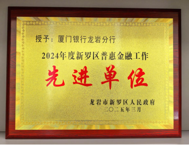 2025年3月18日,龍巖市新羅區(qū)金融工作領導小組辦公室對2024年度新羅區(qū)普惠金融工作成績突出集體給予表彰,廈門銀行龍巖分行榮獲新羅區(qū)“普惠金融工作先進單位”榮譽稱號。