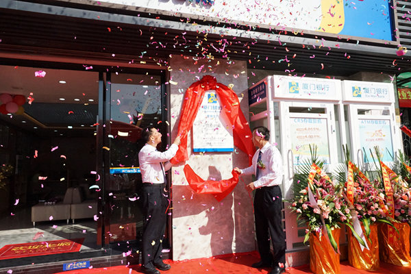 廈門銀行董事長(zhǎng)吳世群與思明支行行長(zhǎng)王金鐳共同為思明支行開業(yè)揭牌。
