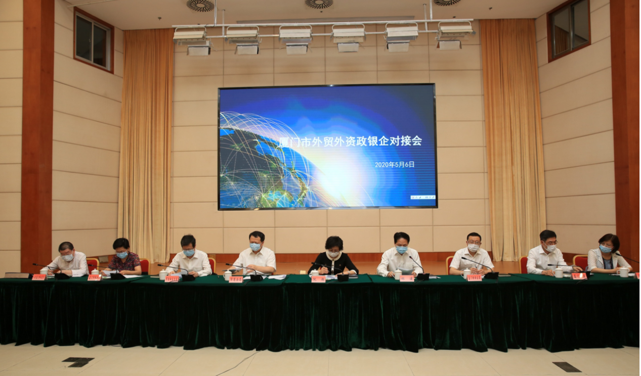 2020年5月6日,為了打通外貿(mào)外資企業(yè)融資難點,進一步推動企業(yè)復產(chǎn)達產(chǎn),由廈門市政府牽頭,十家銀行機構及數(shù)十家外貿(mào)企業(yè)在市政府召開了2020年第一次政銀企對接會。廈門市委常委倪超、副市長林建、市委副秘書長李宗澤及市商務局等多家單位主要領導出席了會議。廈門銀行副行長劉永斌帶隊參會并與在場企業(yè)對接。