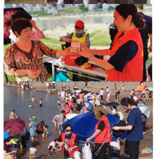 活動當天正逢38度的高溫天氣,分行營業(yè)部全體工作人員準備了藿香正氣液、人丹等防暑藥品,在江灘上免費向前來游玩的市民發(fā)放。同時兵分幾組,在江灘開展保護環(huán)境宣導和拾撿垃圾凈化環(huán)境活動。
