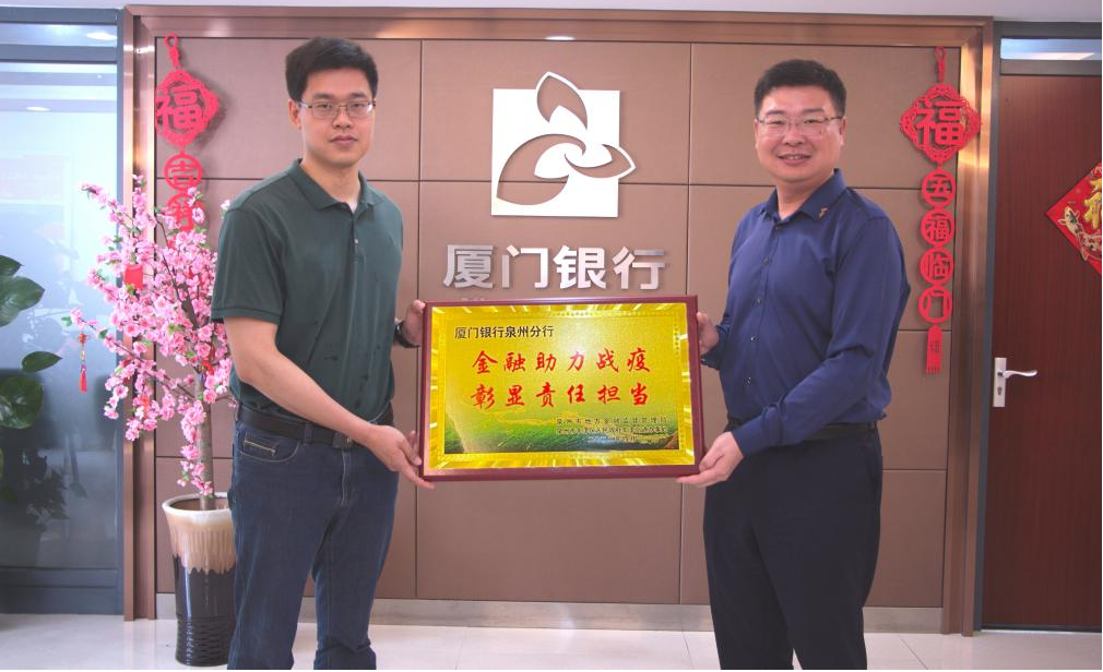 4月25日上午,泉州市金融局為泉州分行送來“金融助力戰(zhàn)疫,責任彰顯擔當”牌匾,對泉州分行在抗擊新冠肺炎疫情期間捐贈義舉表示感謝。