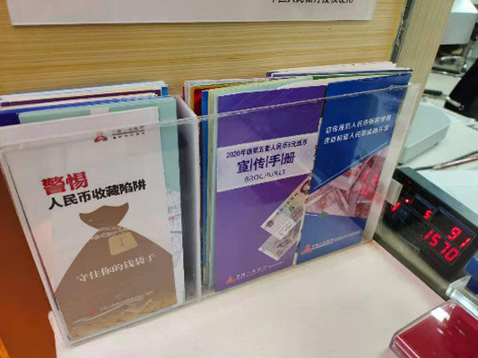 我分行借助營業(yè)網(wǎng)點人流量較多的優(yōu)勢,以廳堂為主陣地,在網(wǎng)點顯著位置擺放宣傳牌、宣傳折頁等,公示反假幣監(jiān)督舉報電話,設(shè)置殘損幣兌換主辦網(wǎng)點;通過網(wǎng)點顯示屏及LED屏等多媒體手段循環(huán)播放反假貨幣宣傳知識。