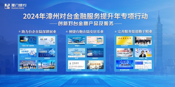2024年漳州對(duì)臺(tái)金融服務(wù)提升年專項(xiàng)行動(dòng)將貫穿全年,包括推出系列對(duì)臺(tái)金融產(chǎn)品及服務(wù)、對(duì)臺(tái)授信支持舉措等,旨在進(jìn)一步提升在漳臺(tái)商臺(tái)胞金融服務(wù)覆蓋率,增加授信支持度,提高金融服務(wù)滿意度,為更多臺(tái)商臺(tái)胞在漳生活興業(yè)提供更有利的金融保障。