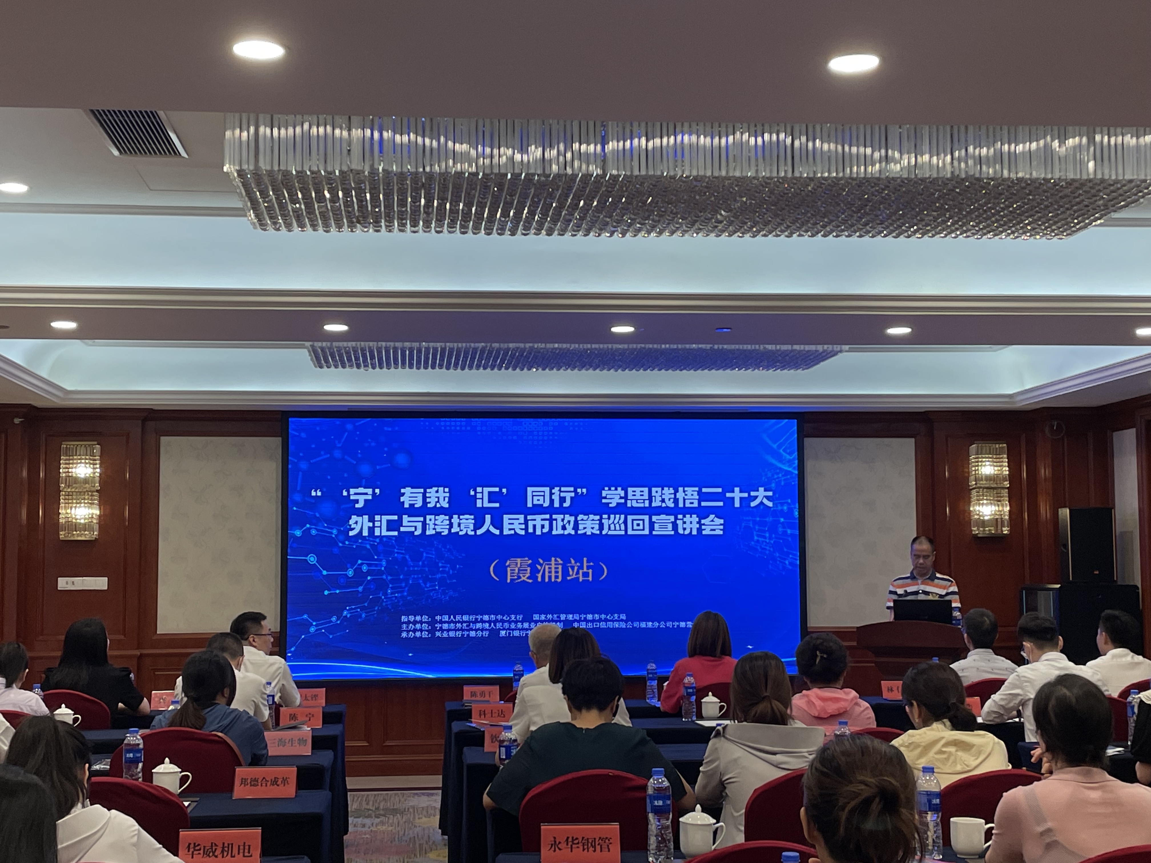 為深入貫徹黨的二十大精神,踐行“金融為民”理念,深化涉外企業(yè)匯率避險(xiǎn)服務(wù),在中國人民銀行寧德市中心支行、國家外匯管理局寧德市中心支局的指導(dǎo)下,寧德市外匯與跨境人民幣業(yè)務(wù)展業(yè)自律機(jī)制聯(lián)合興業(yè)銀行股份有限公司寧德分行和廈門銀行股份有限公司寧德分行于2023年6月13日在寧德市霞浦縣舉辦主題為“‘寧’有我‘匯’同行”學(xué)思踐悟二十大·外匯與跨境人民幣政策巡回宣講會(huì)。人行及外匯局領(lǐng)導(dǎo)、中信保、自律機(jī)制核心銀行代表、霞浦縣同業(yè)、霞浦縣進(jìn)出口企業(yè)代表等50余人出席本次宣講會(huì)。
