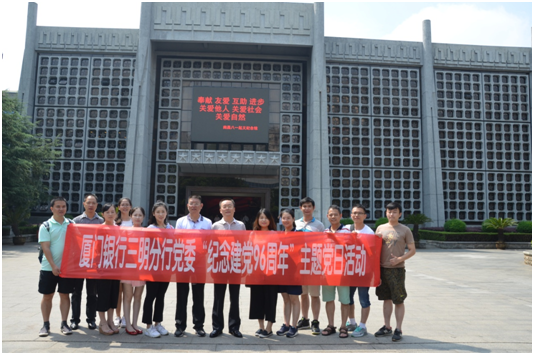 為紀(jì)念中國(guó)共產(chǎn)黨96周年華誕,繼承和發(fā)揚(yáng)黨的優(yōu)秀光榮傳統(tǒng)和優(yōu)良作風(fēng),2017年8月18日,三明分行黨委組織全體黨員干部前往“英雄城”南昌,開展” 紀(jì)念建黨96周年”主題黨日活動(dòng)。