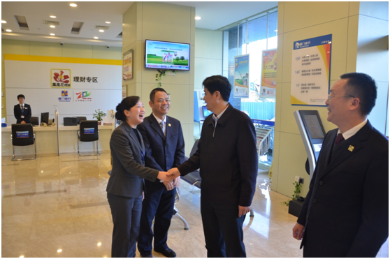 2018年1月17日下午,三明市市長余紅勝、副市長程鵬鷹在人民銀行三明市中心支行行長施永、三明市銀監(jiān)分局局長余里的陪同下,走訪慰問了三明分行,重點(diǎn)了解三明分行的經(jīng)營現(xiàn)狀及發(fā)展情況,并代表市領(lǐng)導(dǎo)向三明分行員工送上了慰問和感謝。