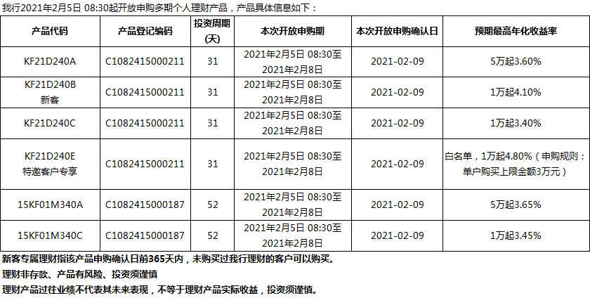 “鳳凰花”理財(cái)產(chǎn)品2021年2月5日發(fā)售信息