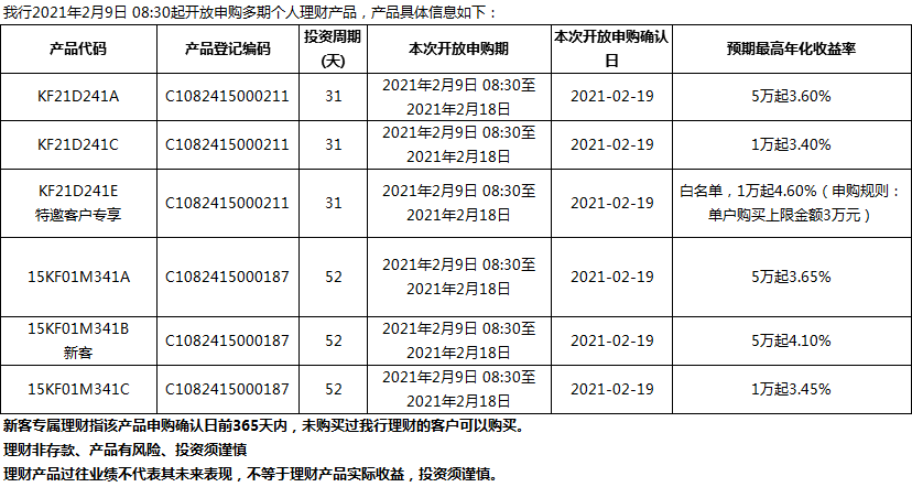 “鳳凰花”理財產(chǎn)品2021年2月9日發(fā)售信息
