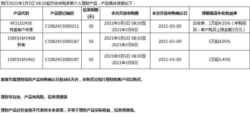 “鳳凰花”理財產(chǎn)品2021年3月5日發(fā)售信息