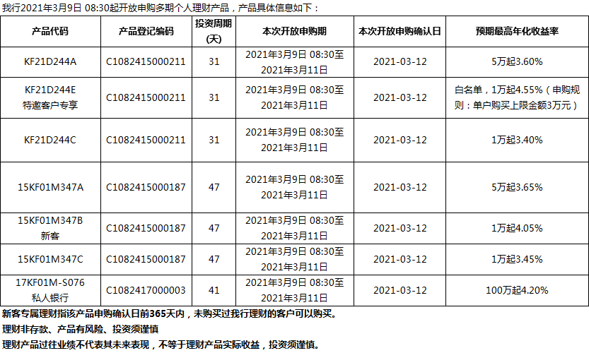 “鳳凰花”理財(cái)產(chǎn)品2021年3月9日發(fā)售信息