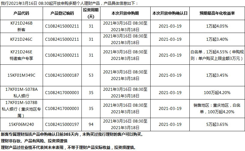 “鳳凰花”理財產(chǎn)品2021年3月16日發(fā)售信息