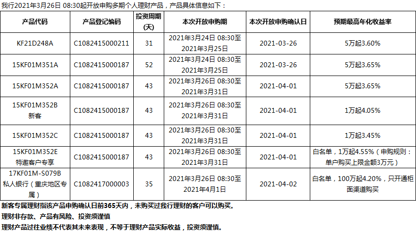“鳳凰花”理財產(chǎn)品2021年3月26日發(fā)售信息