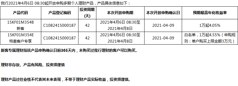 “鳳凰花”理財(cái)產(chǎn)品2021年4月6日發(fā)售信息