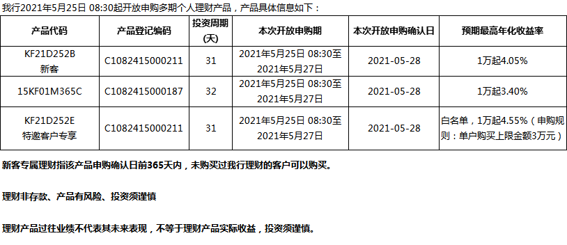 “鳳凰花”理財(cái)產(chǎn)品2021年5月25日發(fā)售信息