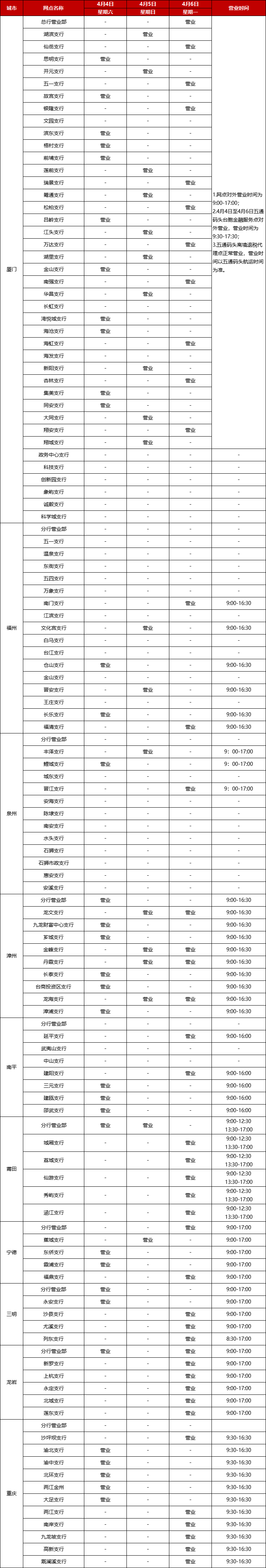 廈門銀行2026年清明假期網(wǎng)點(diǎn)對(duì)外營(yíng)業(yè)時(shí)間通告