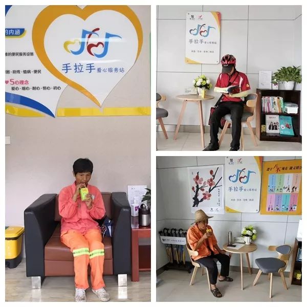 站點(diǎn)雖小,卻考慮周全。目前,“手拉手”愛(ài)心服務(wù)站面向市民提供了多項(xiàng)便民服務(wù)設(shè)備,如飲水機(jī)、簡(jiǎn)單應(yīng)急藥品、報(bào)刊、手機(jī)充電站、wifi、愛(ài)心傘、老花鏡等,部分網(wǎng)點(diǎn)還配備了輪椅、母嬰室、嬰兒車(chē)、微波爐等關(guān)愛(ài)服務(wù)設(shè)施,為廣大市民群眾營(yíng)造了舒適的休息場(chǎng)所。在這里,市民累了可歇腳,渴了能喝杯水,手機(jī)沒(méi)電能免費(fèi)及時(shí)充電,同時(shí)愛(ài)心服務(wù)站也會(huì)宣傳、普及一些金融消保知識(shí),幫助廣大群眾提高消保意識(shí),受到市民群眾的一致好評(píng)。