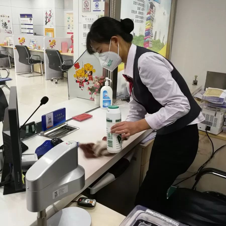 提高營業(yè)網點和自助設備衛(wèi)生消毒頻次,做好現金消毒管理。同時,為工作人員配備口罩和消毒用品等防護用品,持續(xù)做好營業(yè)網點環(huán)境衛(wèi)生管理,保障員工自身和客戶健康。