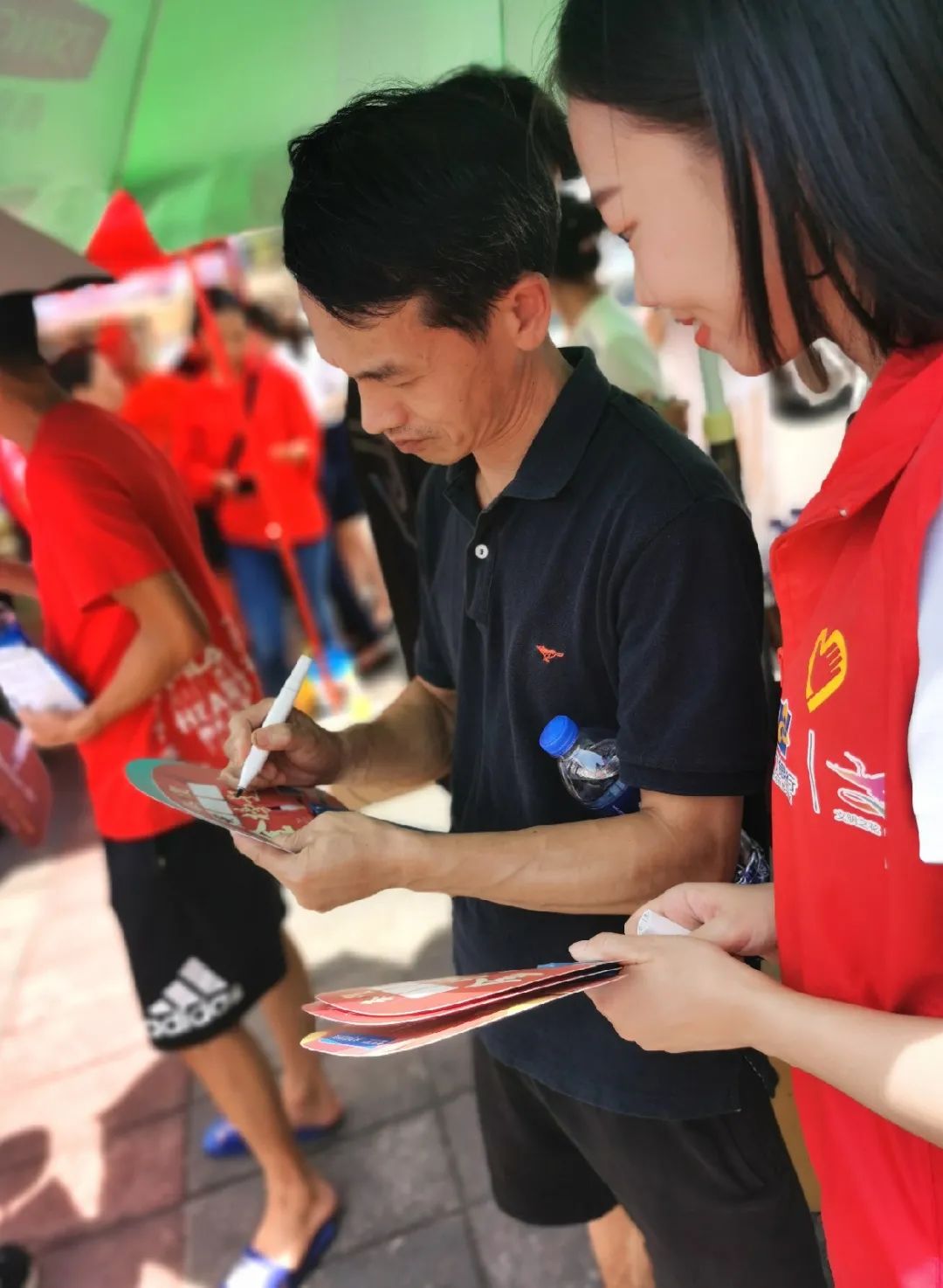 廈門銀行的志愿者們也來到了活動現(xiàn)場,后續(xù)他們將在各區(qū)部分高考考場駐點,為考生提供相關(guān)公益服務(wù)。