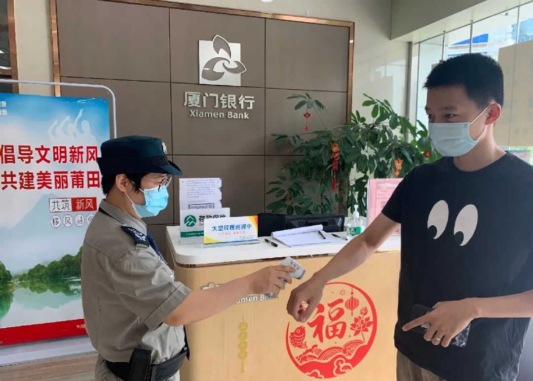 在廈門銀行的各營業(yè)網(wǎng)點,均配備了消毒水、洗手液、消毒濕巾、酒精噴霧等防護用品,網(wǎng)點服務人員一律佩戴口罩防護用具上崗。每日對各項設施進行衛(wèi)生消毒,對客戶可能頻繁接觸到的地方和自助設備場所加大消毒頻度,嚴格落實“現(xiàn)金收支兩條線”要求,確保對外支付的現(xiàn)金全面消殺。此外,嚴格落實體溫測量、健康碼核驗、口罩佩戴和信息登記等要求,確保各項柜面金融服務有序進行。