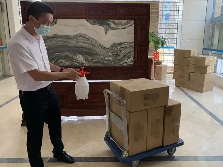 ▲莆田分行對新采購的防疫物資進行消殺