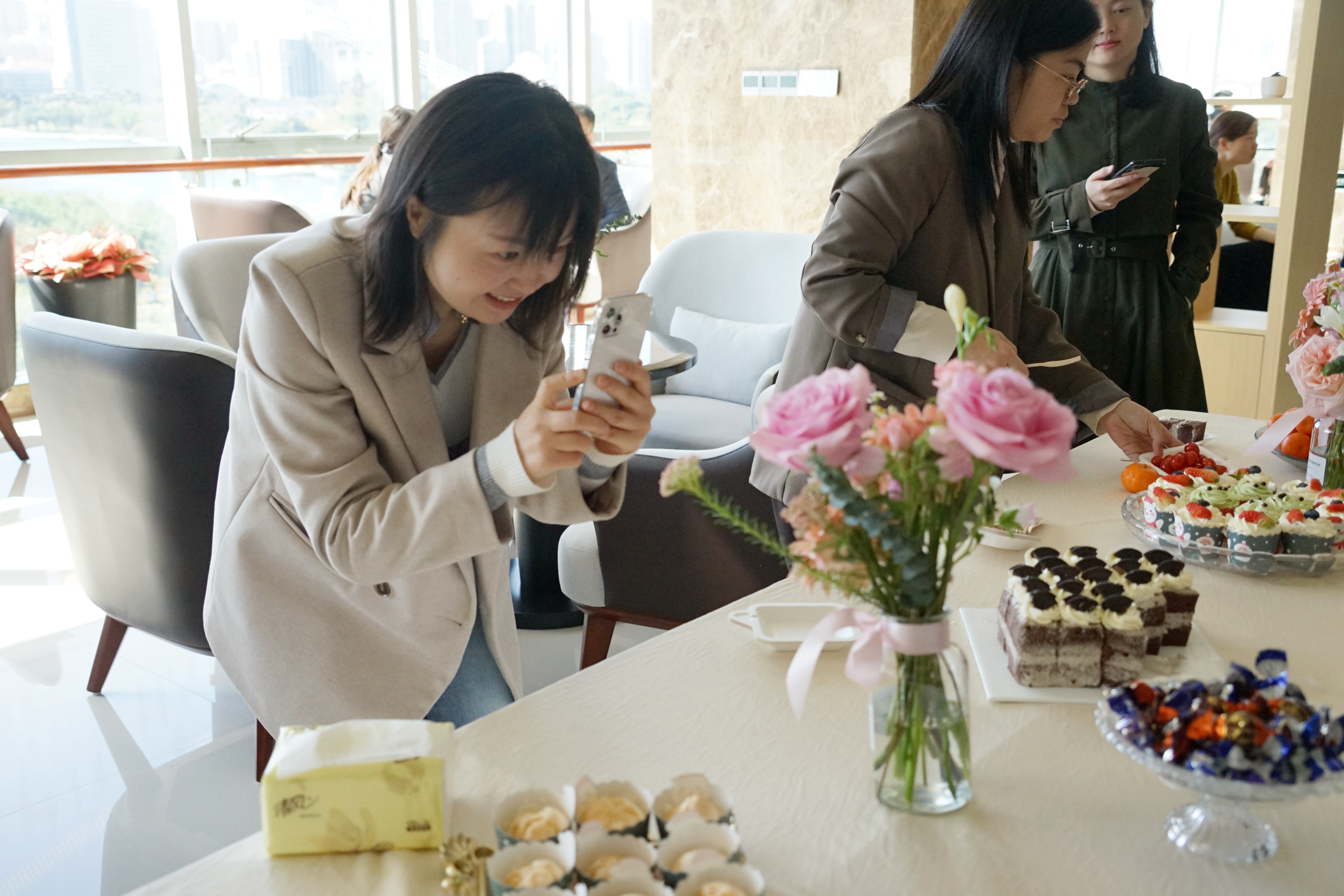 今天的“網(wǎng)紅打卡地”——廈門銀行五樓休閑吧再度贏得大家的青睞。免費供應的甜點和飲品,大家在悠揚的音樂和溫暖的陽光中,收獲一個悠閑的下午。女神們或三兩談笑,或拍照PO圈,優(yōu)雅、恬靜,每個人都是一道美景,讓人賞心悅目。