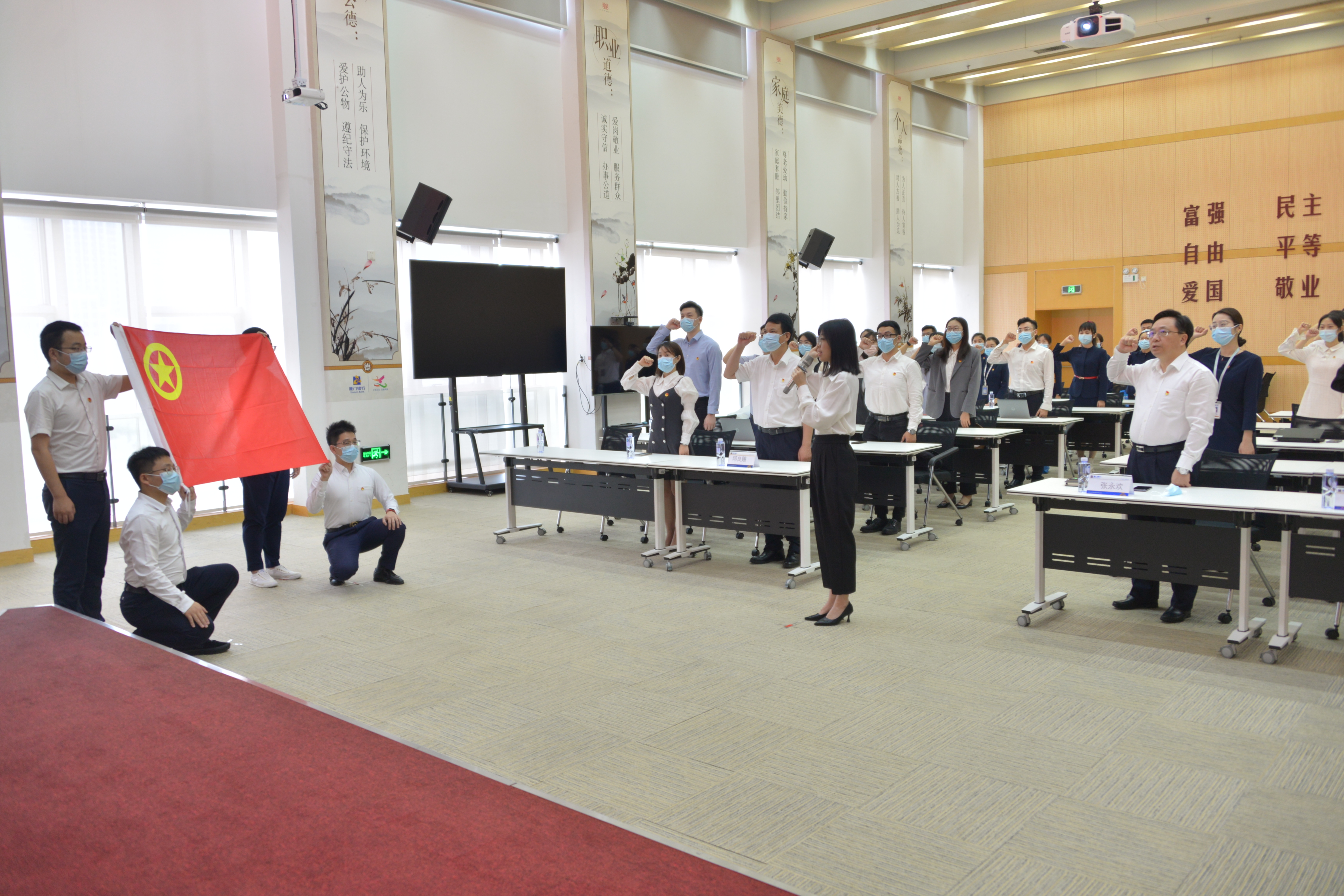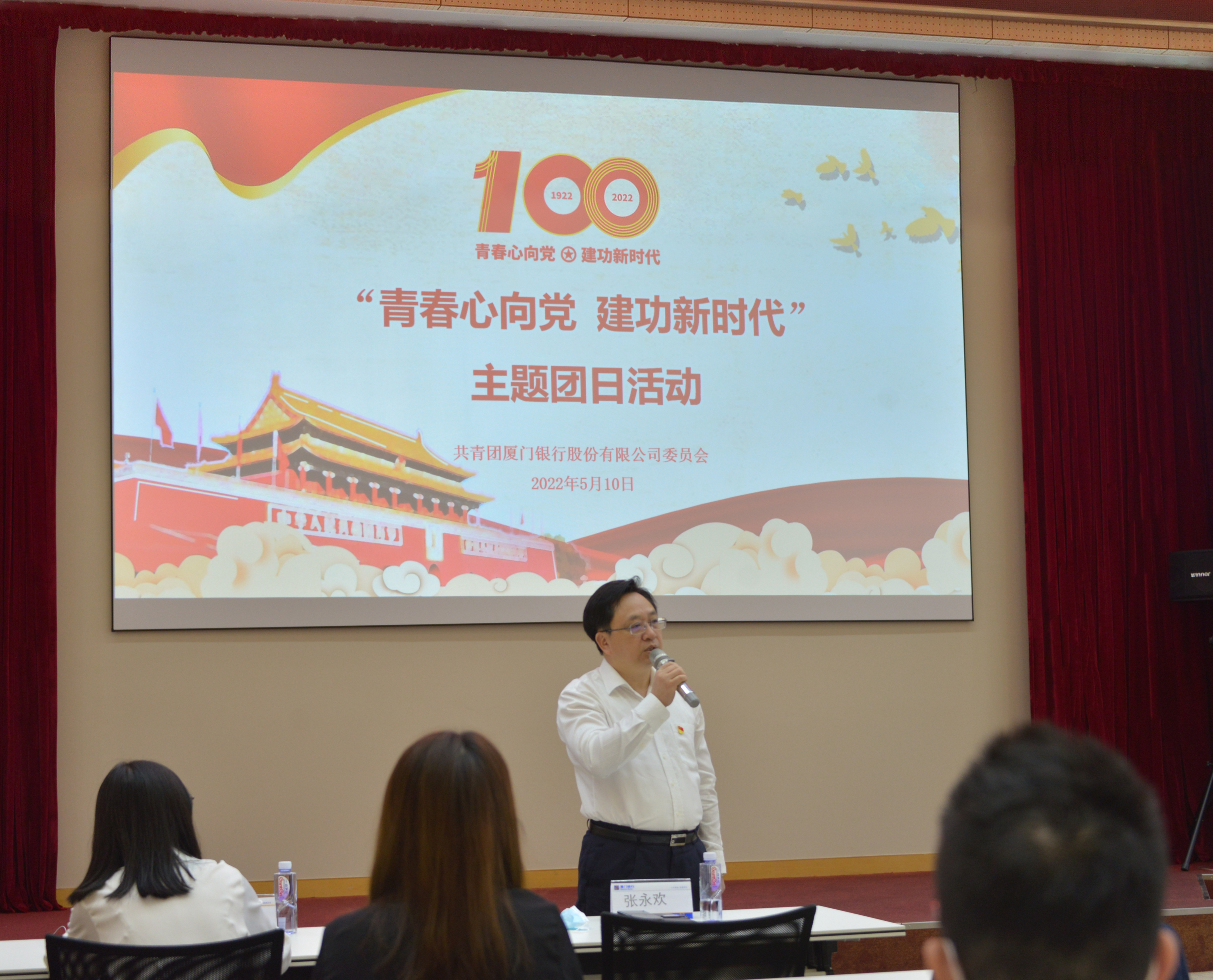 廈門銀行黨委副書記、監(jiān)事長張永歡,黨群工作部主任邱良賜,總行團委書記楊鷺及團委委員、廈門地區(qū)團支部書記、團員青年代表出席活動。