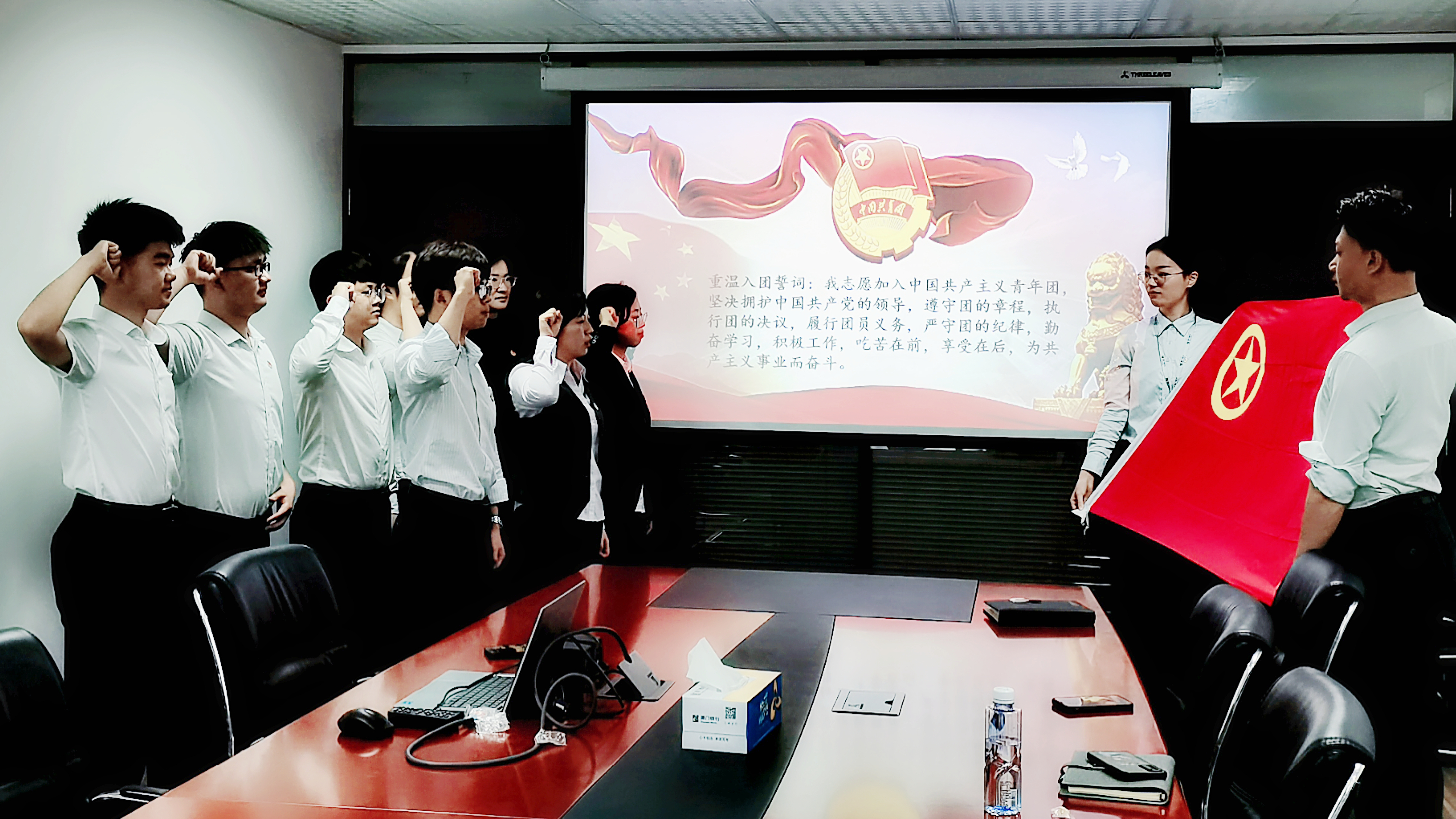 活動伊始,在總行團委書記楊鷺的領(lǐng)誓下,全體參會人員面向鮮艷的中國共青團團旗,重溫入團誓詞,踐行青春誓言。