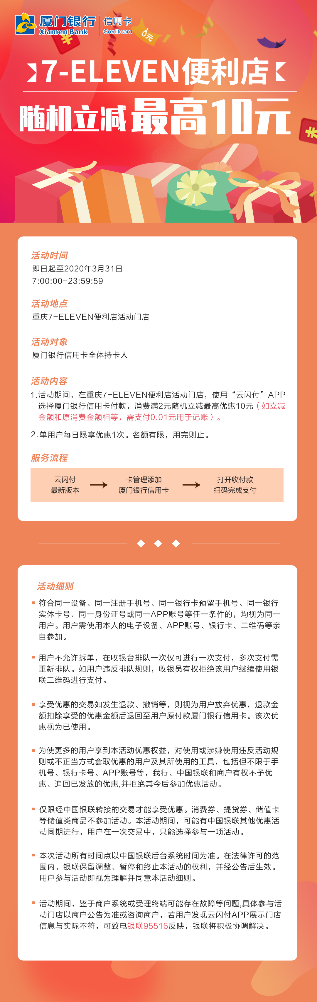 重慶7-ELEVEN便利店,用廈門銀卡信用卡支付享隨機(jī)立減