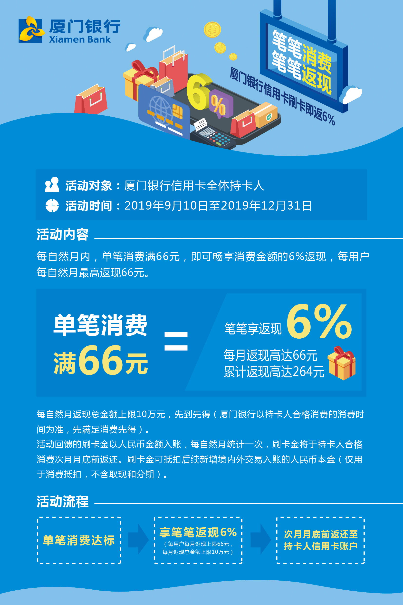 筆筆消費(fèi),筆筆返現(xiàn)6%!每月最高可返66元