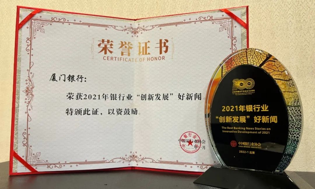 廈門銀行榮獲2021年中國(guó)銀行業(yè)“創(chuàng)新發(fā)展”好新聞