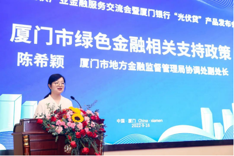 廈門市地方金融監(jiān)督管理局協(xié)調(diào)處副處長陳希穎介紹了廈門市綠色金融相關(guān)支持政策。