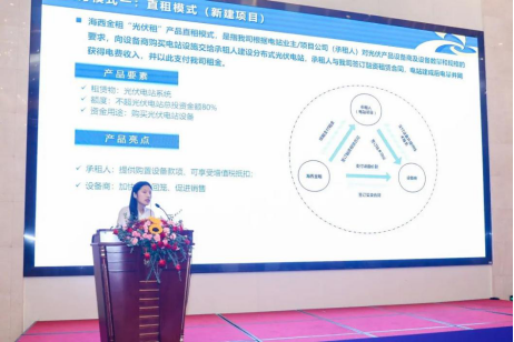 福建海西金融租賃有限責(zé)任公司陳華麗介紹了“光伏租”產(chǎn)品。