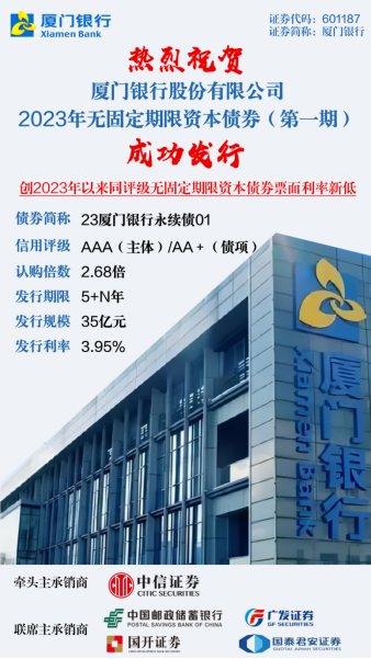 2023年廈門銀行無固定期限資本債券(第一期)成功發(fā)行