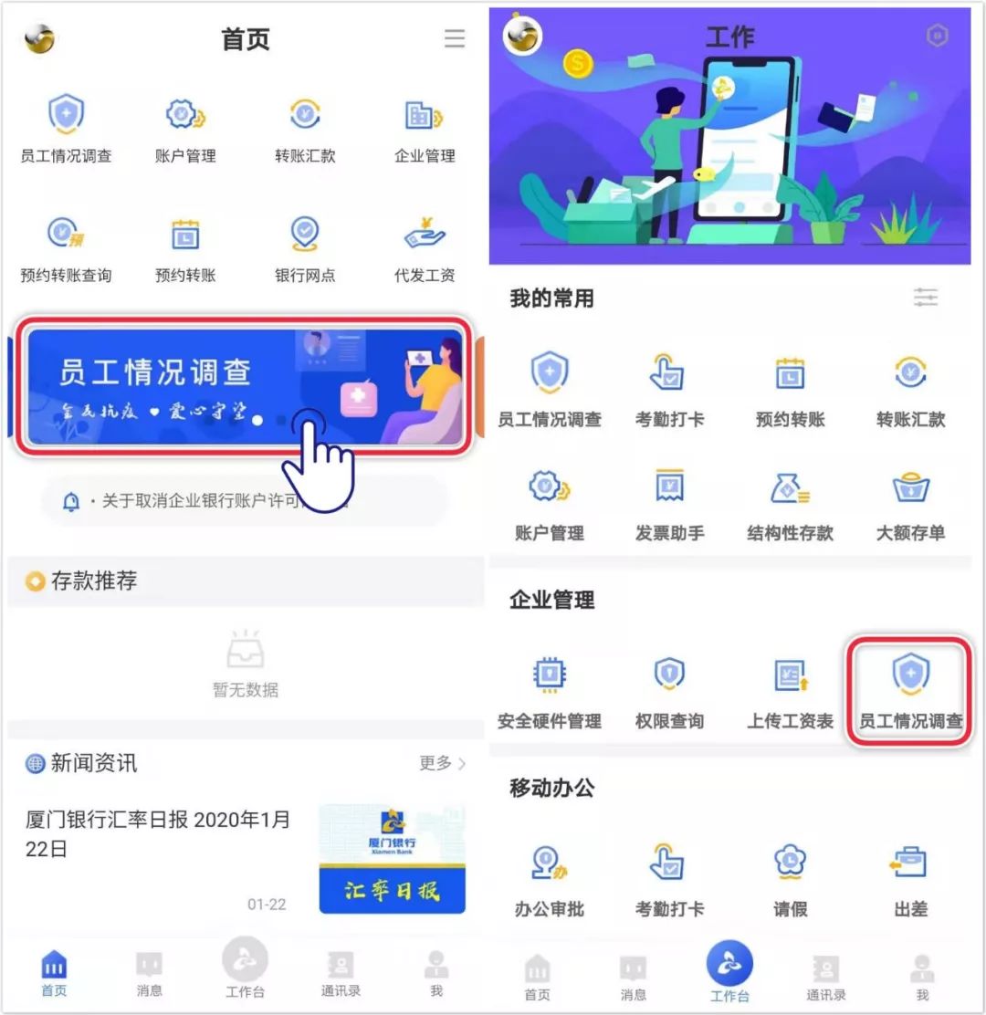 戰(zhàn)疫情,報(bào)平安 | 廈門銀行企業(yè)手機(jī)銀行推出“員工情況調(diào)查”服務(wù)